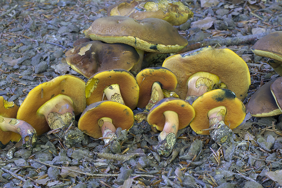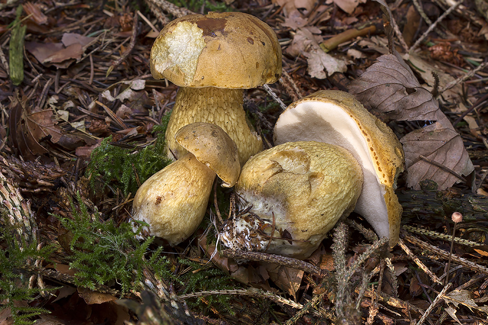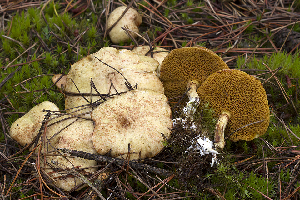 Aureoboletus gentilis - Guldrørhat Aureoboletus - Ribbestokket rørhat Boletus aereus - Bronze-rørhat Boletus edulis - Karl Johan Boletus pinophilus - Rødbrun rørhat Bole...